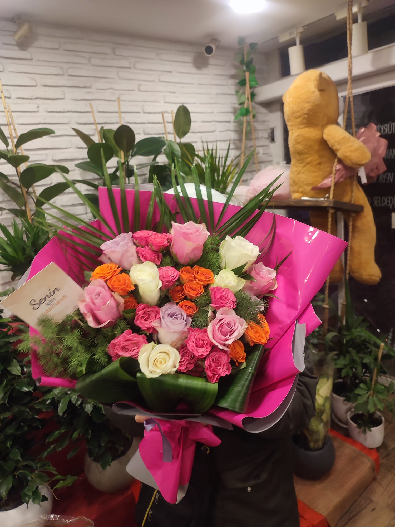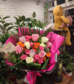 Canlı pembe ambalajı ve renkli gül uyumuyla dikkat çeken bu özel buket, enerjik, neşeli ve romantik bir etki yaratmak isteyenler için özenle tasarlanmıştır. Pembe, beyaz, lila ve turuncu tonlardaki güller; yeşil yapraklar ve dekoratif bitkilerle zenginleştirilerek dolgun ve göz alıcı bir aranjman haline getirilmiştir.Pembe güller sevgi, samimiyet ve zarafeti simgelerken; beyaz güller saflık ve iyi dilekleri, lila güller hayranlık ve özel bağları, turuncu güller ise enerji, mutluluk ve pozitif duyguları temsil eder. Bu renkli uyum sayesinde buket; sevgiliye, eşe, arkadaşa, anneye ya da içten bir tebessüm bırakmak istediğiniz herkese hediye edilebilecek çok yönlü bir seçenektir.Modern pembe ambalajı ile klasik gül buketlerinden ayrılan bu tasarım, özellikle doğum günü, yeni iş tebriği, teşekkür, geçmiş olsun ve sürpriz hediyeler için sıklıkla tercih edilir. Şık ve canlı görünümü sayesinde hem genç hem de klasik zevklere hitap eder.Sevdiklerinize renkli, enerjik ve unutulmaz bir sürpriz yapmak için bu özel pembe ambalajlı gül buketini urfacicek.com üzerinden güvenle sipariş verebilirsiniz. Urfa çiçekçi denildiğinde kalite, tazelik ve hızlı teslimat arayanların ilk tercihi urfacicek.com’dur.