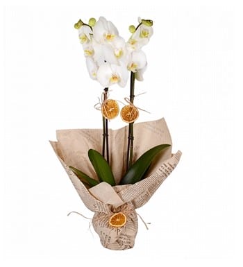 Premium Çift Dal Beyaz Orkide
